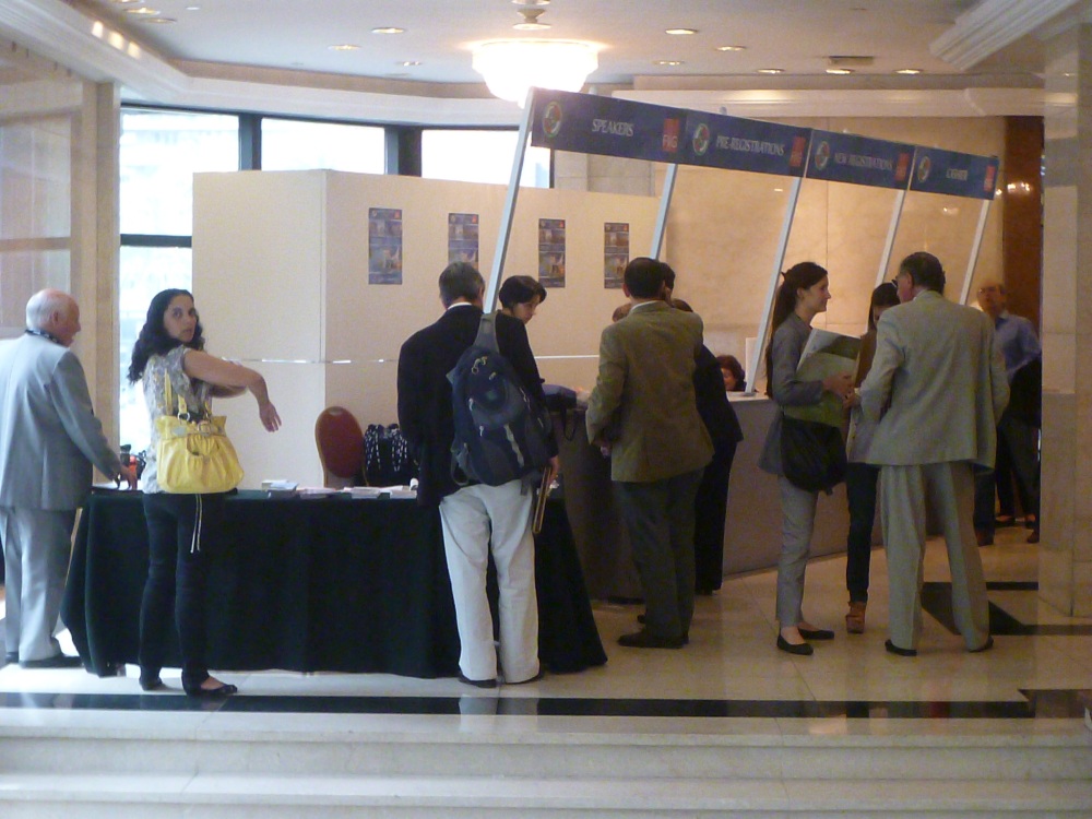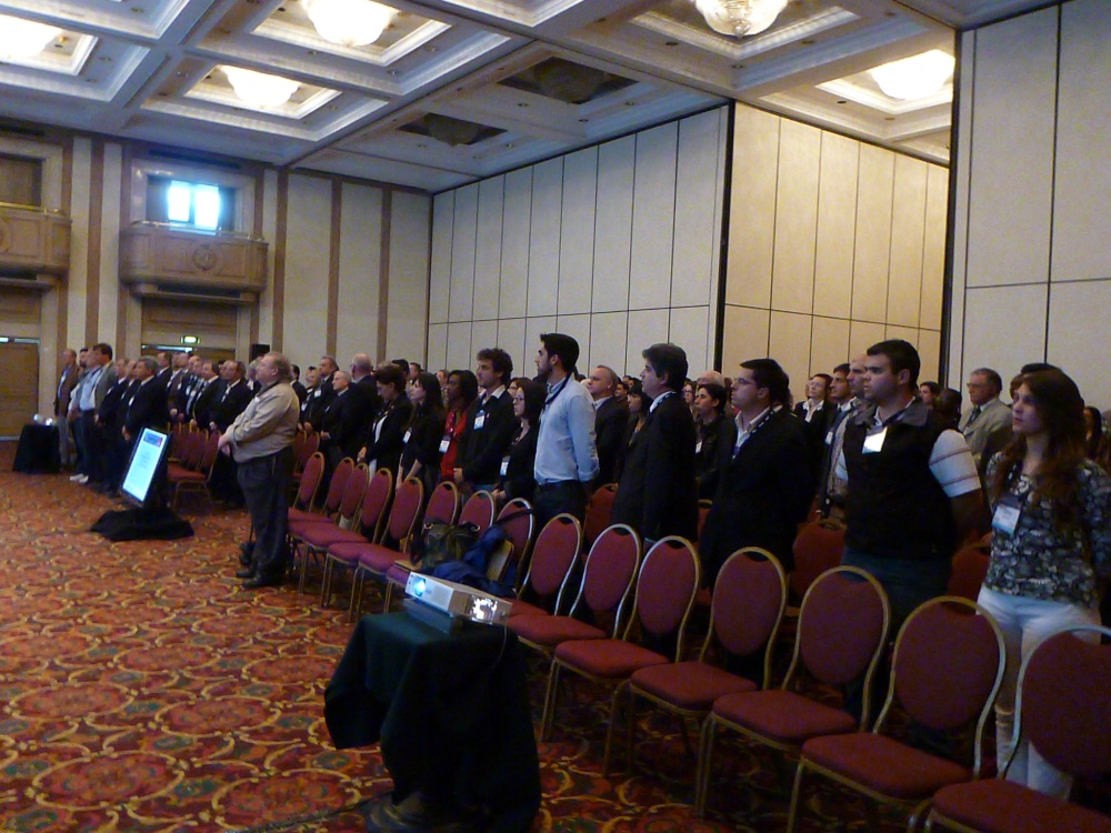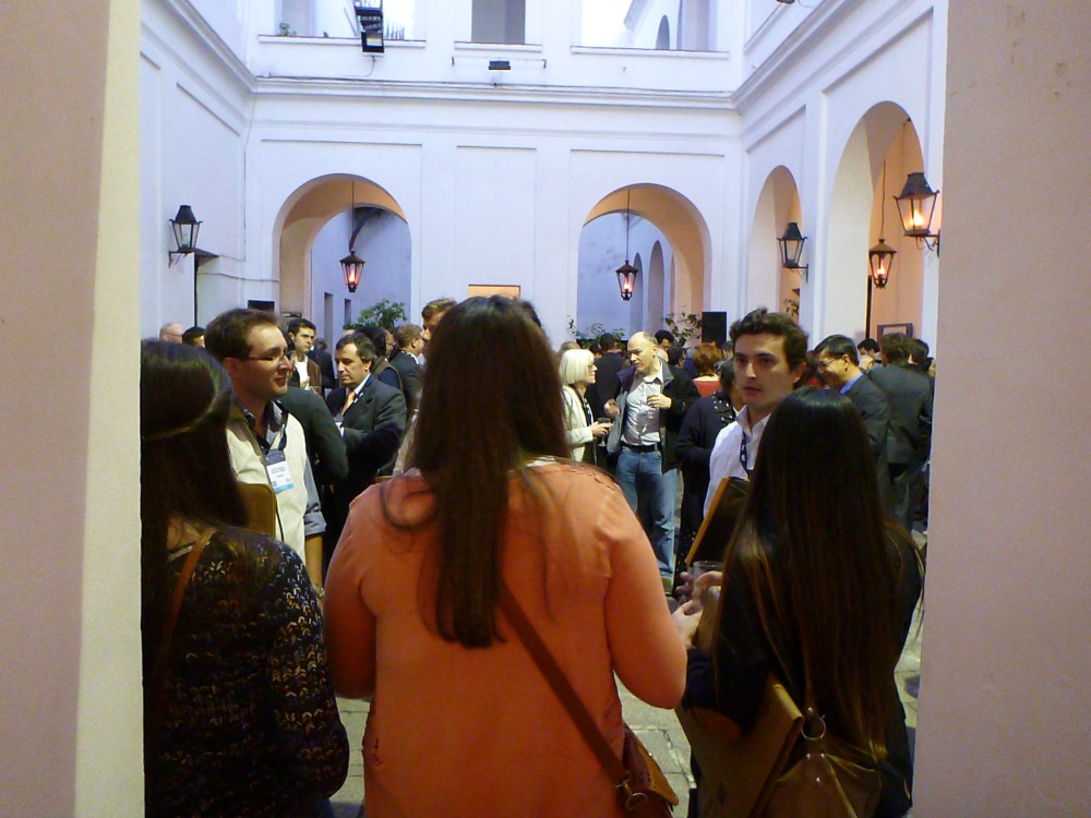 After the opening ceremony with the remarkable film on “the Exodus of the Uruguayan People”. all participants were invited to participate in a reception at “Cabildo de Montevideo”. A surprise met all participants when they came out of the Radisson Hotel and Conference Center because they were met by samba dancers and drummers who followed all participants, dancing, through the streets of Montevideo to the venue of the reception. This was a remarkable parade! The “Cabildo de Montevideo” building was also remarkable, especially inside. The reception was held in an atrium and with the wonderful Uruguayan spring evening, all participants enjoyed to be able to be outside. Click picture for bigger format