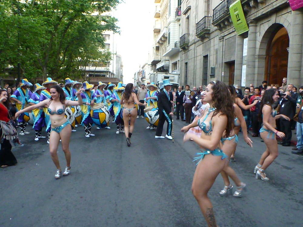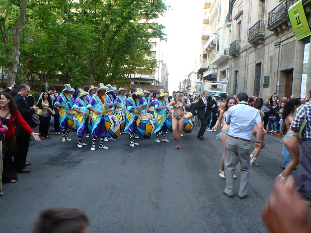 All participants walking through the streets of Montevideo guided by dansers and drummers