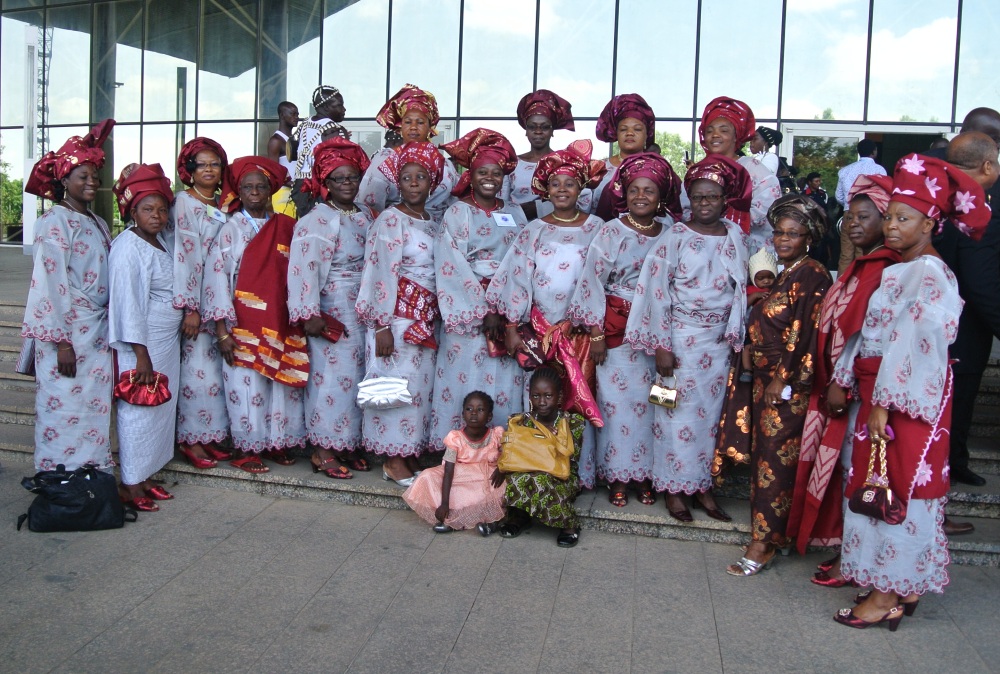 Surveyors Wives in colourful and matching dresses. The President of Nigeria,