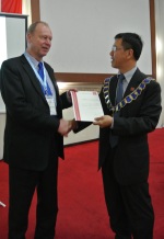 President CheeHai Teo presents the Membership Certificate for the new member association from Gabon to Marc Vanderschueren
