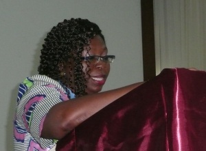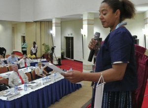Diane Dumashie, Chair of FIG Task Force on Africa making her report to the General Assembly.