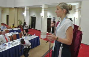 Eva-Maria Unger, Vice Chair of Young Surveyors Network making her report to the General Assembly