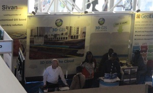 Meeting at Esri booth that offered good facilities for smaller business meetings.