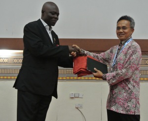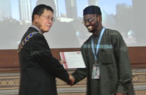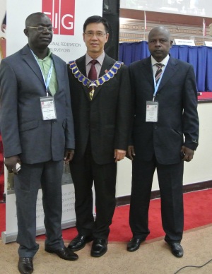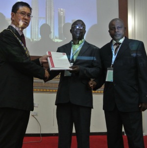 FIG President CheeHai Teo presents to Ecole Nationale du Cadastre et des Sciences Geographique, ENCSG, Gabon their member certificate.
