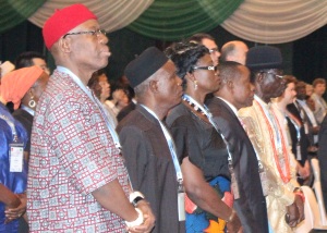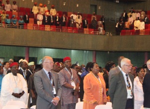 Participants listening to the Nigerian Anthem and the FIG fanfare at the Opening Ceremony.
