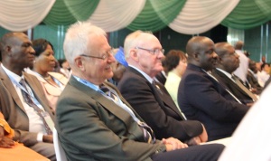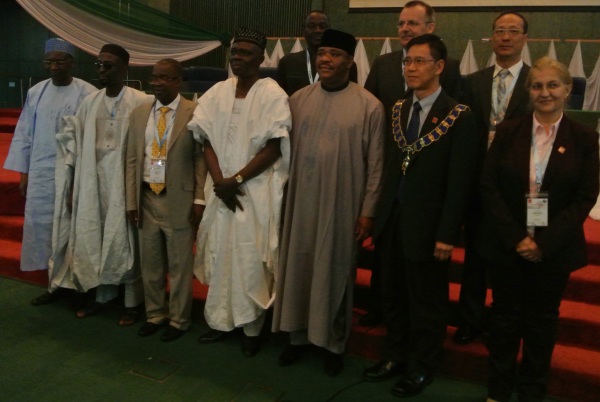 Stephen Olubode Adeaga, President NIS (left), Minister of Works, Arc. Mike Onolememen representing the Nigerian President Goodwill Jonathan, who had sent his apologies,  CheeHai Teo, President FIG, Rudolf Staiger, Vice President FIG, Chryssy Potsiou, Vice President FIG and Pengfei Cheng, Vice President FIG