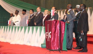 Opening speech by the Minister of Works, Arc. Mike Onolememen on behalf of Nigerian President Goodwill Jonathan who sent his apologies.
