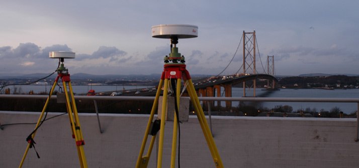 GPS Antennas in front of Forth Road Bridge, Scotland
