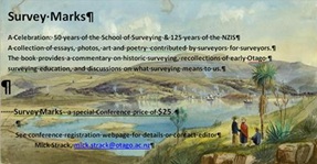 During the Conference, two books were launch. “100 Fathoms Square: the Surveying of Tonga” by Bruce Alexander and Larry Wordsworth and “Survey Marks”. “Survey Marks” in particular is a celebration of 50 years of the School of Surveying at the University of Otago as well as 125 years of the NZIS. The book was edited by Dr. Mick Strack and comprised essays, photos, art and poetry contributed by surveyors. The book included recollections of early surveying education at the University of Otago.