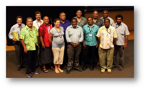 After the several addresses offering support and encouragement from Mr Lilje, Dr Dawson and PGSC Chair Mr Faatasi Malologa (Director of Tuvalu Lands & Survey Departments), work to finalise the content of the “Pacific Geospatial and Survey Strategy” began. Refinement of the strategy continued for the next two days, and it was subsequently endorsed by the PGSC.  Discussions in relation to the strategy and its formalisation were facilitated by Mr Jens Kruger, Dr Dawson, Mr Sarib and Mrs Molly Powers-Tora.