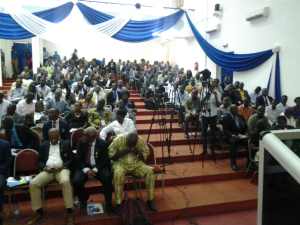 Centre Dr W Anim Odame Executive secretary, flanked by