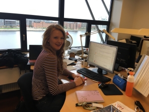 Martine Eelderink at her desk at FIG Office in Copenhagen, Denmark