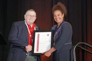 Past President Rudolf Staiger was called to stage, and on behalf of