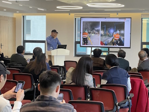 demonstrating the CHCNAV drone and VR i89GNSS equipment to students,