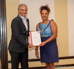 Top left: Khaled Nabbout receives the certificate at the FIG General Assembly