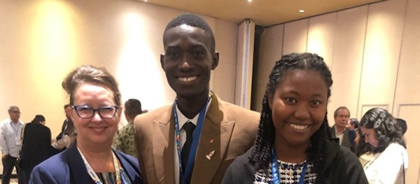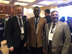 Photo with Youthmappers: Patricia Solis (Arizona State University, President PAIGH & YouthMappers Co-Founder/Director), David Elegbede (FIG YSN) and Maria Abigail Timbawala, Leadership Fellow, YouthMappers, Jamaica Chapter.