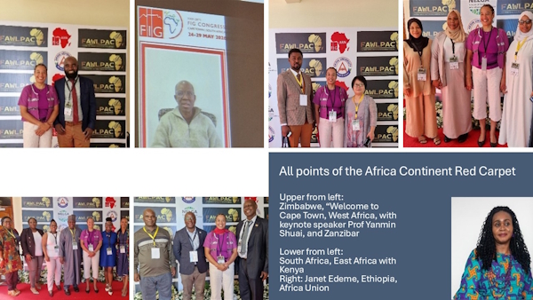 Further, the representation from FIG ARN community was insightful, with delegates attending from all compass points of the African continent as the photos (below) on the red carpet demonstrate.  Further, the audience greatly appreciated a video recording from Nape Mojapelo, Chair FIG LOC Cape Town, South Africa (picture above), showcasing the FIG 2026 Congress to be held in Cape Town May 2026.