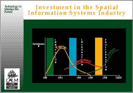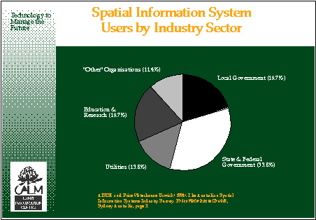 I should mention that I believe it is the spatial information infrastructure comprising of the attributes on diagram 6 which should remain in the ownership of the state whilst the many other themes or subsidiary bases should be managed and even owned by the private sector. The fundamental data bases are the "crown jewels" of the spatial information industry and should be the responsibility of the state to maintain, update and upgrade. The actual processes could of course be contracted to the private sector.