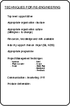 The approach we have taken is to use advanced generic management techniques to plan the overall reform and then to manage the projects as a total program using project leading management techniques.