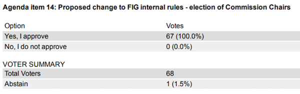 14. PROPOSED CHANGE OF FIG INTERNAL RULES - ELECTION OF COMMISSION CHAIRS ELECTS