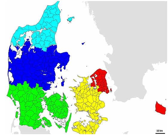 Figure 1: After the structural reform in Denmark the 12 regions will