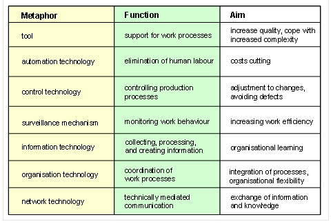 Figure 2: Various functions of modern ICT (Schienstock and Hämäläinen, 2001)