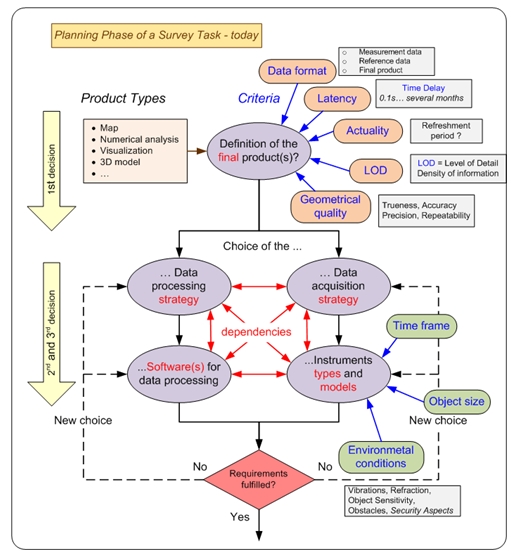 Today a surveying project will only satisfy our clients when the planning and design phase is done with a lot of care together with the customer (and other relevant partners) and the desired final results in mind. One big difference from the past is the need for real decisions before the measuring even starts (Fig. 7).