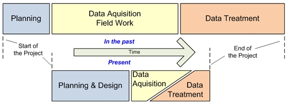 Fig. 8b: The different phases of a surveying project (not to scale).