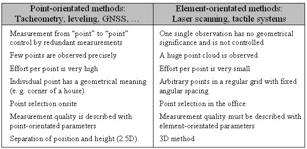 Table 2: Principal differences between point-orientated and element-orientated measurements