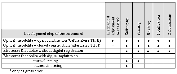 • The observer had a direct influence on the quality of the measurements (pointing, bringing into coincidence, reading, …). Surveying was a handcraft, demanding a lot of experience and skills.