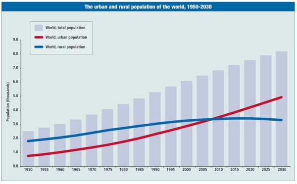 Figure 1. The urban and rural population of the world (source: UN Population Division)