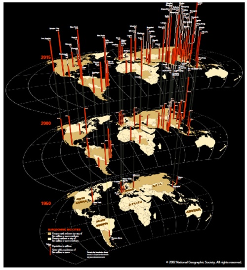 Figure 2. Growth of megacities and prediction for 2015 (source: National Geographics)