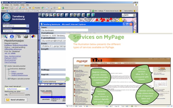Figure 8: Citizen Services on Norwegian MyPage Geoportal (source: Strande, 2009)
