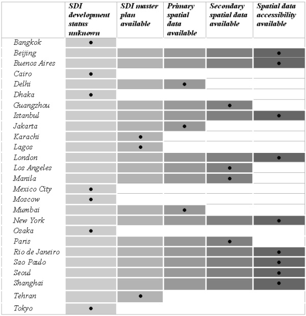 Table 3: Application of SDI in the world’s megacities (source: Boos and Mueller, 2009)