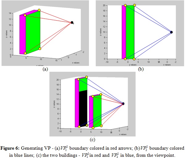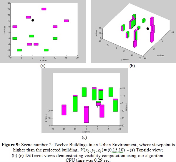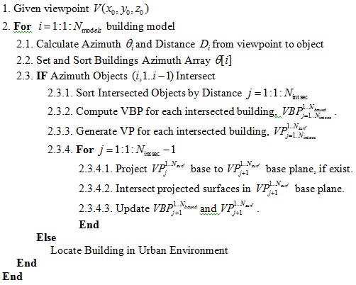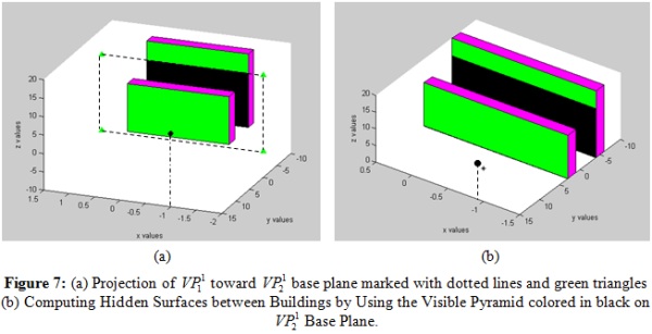 volumes, hidden surfaces between buildings are rapidly computed. The