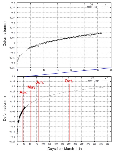 deformation observed at the GEONET Station (950167) and (Bottom diagram)