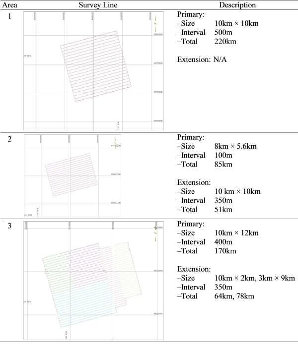 consists of 17 main lines with 350 m spacing. The survey corridor was