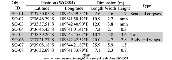 Table 3 List of suspected objects in Area-3