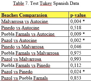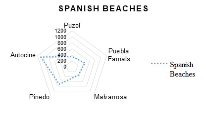 beach of Puzol had the lowest. In Brazil, the beach that obtained the
