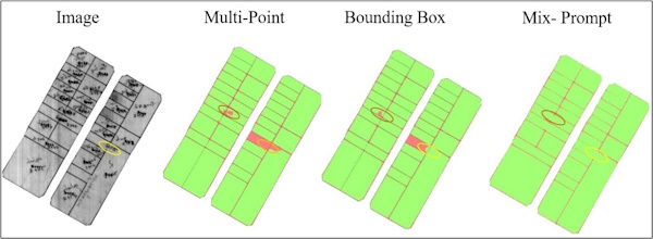 different prompting methods (points, bounding boxes, and combinations)