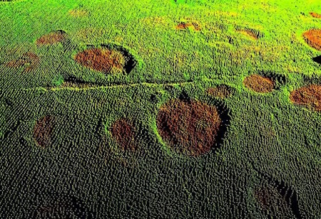 Fig. 2: Dinosaur tracks: 3D laser point clouds: the latest Einstein technology in laser scanning, based on Einstein's work from 1916/17 ‘On the Quantum Theory of Radiation’. The 3D laser point cloud, measured to the nearest millimetre using a Leica LaserScan in 2003, shows dinosaur tracks in Courtedoux/JU
