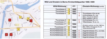 Fig. 4: Close quarters: Wild and Einstein's places of residence between 1900 and 1909 in the Kirchenfeld district of Bern.