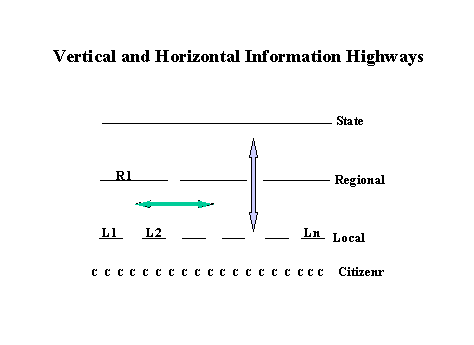 The different organizations do not have to go through all the phases. Many starts with letting one or more technicians purchase equipment for digitalisation and conversion of data. In those cases there is great risk that the technicians afterwards will sub-optimize in order to protect their own position of power. The organizations would develop faster if they changed the focus from production to utilization. The best would be to start with developing a strategy for the future use of data and information. Presumably it would be more profitable to outsource establishment and conversion. 3. REALIZED DEVELOPMENTSWith another simple model I will illustrate some realized and some foreseeable courses of events and/or developments. Developments that support my assertion on need for changes in and introduction of new competence. The model is so general and robust that it can be used as well on one organization with several departments as on a number of institutions independent of the stage of development.