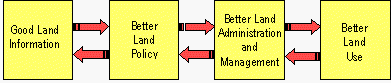 5. The interface between markets, land registration, spatial planning and valuationLand markets are made up of a constantly developing portfolio of legal interests and transaction types, including both direct and derivative interests. The general rationale for land markets is that, under appropriate institutional frameworks, they will tend systematically to move land towards the most economically efficient ownership and use. The range of types of interests and transactions in land is typically related to the level of sophistication of the related functions in the economy, particularly in the context of the financial services and related professional sectors. There are several key requirements for a properly functioning market: an appropriate legal framework aimed at minimising risk and uncertainty over issues of ownership and use, registration of interests in land and spatial land use planning. Land registration and the provision of related information as the basis of land transactions underpin the efficient operation of the land market by two main mechanisms: greater security for those interested in transacting on that property and reduction of the costs in both time and money by simplifying the legal and other procedures. Again this could be expected to increase the value of registered land by reducing the friction in the market. Spatial planning may encompass a very wide range of activities and of potential interventions. There are sound arguments supporting the move towards greater local responsibility in spatial planning, and the development of more effective planning processes based on improved access to information and application of the principles of good governance and economic management. Valuation of rights in land, whether personal or professional, are the driving force in the functioning of the real estate market. An integrated perspective of the interface between land markets, land registration, spatial planning and valuation indicates that society, through processes of good governance enabled by access to appropriate and reliable information, sets minimum requirements in terms of environmental standards and expectations, and of social tolerances. Within these boundaries different societies develop different solutions to support and enable private and public access to land and other resources through a framework of land registration, spatial planning and valuation. 6. Re-engineering land administration systemsMany land administration systems need to be re-engineered (Williamson and Ting 1999). Examples include many land administration, cadastral and land titling projects around the world which are still based on a relatively narrow land administration paradigm centered on land registration and cadastral surveying and mapping. But efficient and effective land information infrastructures are now required to meet the information demands for successful implementation of sustainable development. The extent of the challenge to capture, process, maintain, analyse, integrate and distribute land related information varies from country to country. Land administration systems need to be more service oriented and to meet the requirements of a greater variety of users. Increasingly there is a land information focus which dominates land administration systems rather than the traditional land market focus. In re-engineering systems, attention needs to be paid to an increasing complexity of legal rights, restrictions and responsibilities and to educating the public about the opportunities created by the greater availability of data. Land administration systems are increasingly required to handle vast amounts of data. However, the installation of hardware and software systems should be based upon a careful analysis of current and future information flows and the need to maintain land and property records. When information systems are conceptually well designed they will become a critically important component of land administration infrastructures. In many countries, there is growing co-operation in land administration between the public and private sectors. Clear management systems and institutional arrangements are necessary to efficiently administer land related data sets and to ensure continuing financial support. There is a need for accountability and transparency to ensure the availability, accessibility and quality of basic data sets. In the context of developing countries, moving away from a sole focus on the cadastre as the only source of information and having other information to be part of the land administration infrastructure will allow: In updating existing systems there needs to be a focus on user requirements. Users demand transparency, efficiency, speed, equitable access, data quality, interoperability, and value for money and service. In meeting these demands, most existing systems will need to be re-engineered. This means a new land administration paradigm is required to support sustainable development. The Workshop FindingsAs a result of the above discussions the Workshop summarised the findings which are reproduced below (UN-FIG, 1999). Based on the discussions and findings, the Workshop made a number of recommendations which are summarised in the next section and reproduced in full in Appendix 2. The Workshop took note of several of the major economic, social, technological and environmental challenges leading into the new millennium: rapid urbanisation; environmental degradation; the changing role of government in society; widening economic inequity and an increase in poverty and food shortages; and the economic and social challenges associated with increasing globalisation. The availability of reliable information about land and its resources emerged as a vital issue in managing these challenges. If relevant and good decisions are to be made by public authorities, private resource users or community bodies, they must be based on sound information about the land and 