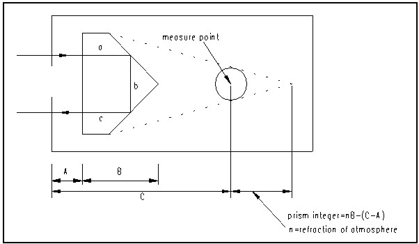 Figure 3 Prism integer (2) Error by incidence angle Since the error happens according to the light angle that enters into a prism, it is desirable to set up a prism side vertically and exactly to the measuring point when we set up a prism. The following Table 1 shows the experimental value that TOPCON Co. executed at 1km section by prism's incidence angle. Table 1 Distance error volume by
