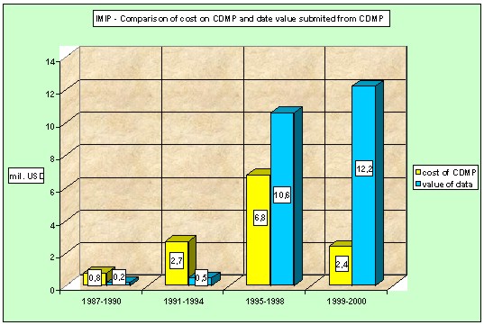 The progress of cost and data value can be seen on Pict. 2. At present, the total value of CDMP data output ($23.5 million) significantly outweighs the cost for creation, updating and data management ($12.7 million). Picture 2.