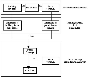 • The suitability of zoning and development potential by parcel can be evaluated by the Building-to-Land Ratio (BLR) and Floor Area Ratio (FAR) by buildings or blocks.(Lee, Yangjae and Junehwan Koh, 1997)