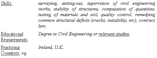 Impact of new technologies Surveying has relied from its origins on measurements (data gathering) and data interpretation, data managing and manipulation (modelling), i.e. KENNIE 1998. For centuries surveyors have been essential for correct and accurate data gathering and modelling. However technological evolutions in the last twenty years of the twentieth century have dramatically changed the data gathering and modelling process in a way that surveying qualifications are easily attained. Consequently market needs have been transferred from the BAC+3 or higher qualifications standard, to the technician level standards. This applies to both the public and the private sectors. This is clearly reflected in the declining number of students attending university surveying courses in many countries, as well as the patterns of hiring surveying personnel by technical firms and public offices. In Germany for example an increase of 11.5% of surveying technicians between the years 1984 and 1995 in the public sector has been recorded, while qualified surveying engineers have been reduced by 10.6% in the same period. This trend will continue in the years to come and it is expected that the ratio between newly qualified surveying personnel qualified to BAC+4.5 to newly qualified technicians, will for the first time be around 1:7 each year (SCHROEDER, 1998). The surveying profession itself Although all professions are undergoing development processes for various reasons, one can hardly find a technical profession that compares with the surveying profession in terms of its variation, diversification, split, and its undefined or untrained professional sectors. The FIG definition of Surveyor is by no means complete and all-inclusive. It needs to be adapted to reflect the profession's full coverage of branches and activities as practised in, and recognised or accepted by the market globally. In a world where globalisation seems to be the driving force of economical development, surveyors must depart from local and biased definitions of their professional boundaries, and be fully aware of their opportunities in a world market. A complete understanding of what surveyors are and what role they play or can play in a very competitive free world market, is a prerequisite of re-establishing an attractive professional field. Surveyors in one part of the world learning from the opportunities that surveyors from other parts of the world have developed, may help them overcome either reduction of the demanded qualification standards, or the shrinkage of professional prosperity and image experienced locally. The often expressed aim and task of the modern surveyor is to go beyond the profile of professional being solely a "data supplier" or "data administrator" (MAGEL, 1999) and achieve the profile of a professional with "integrated competence" in land, property and construction management. As envisioned by FIG (KENNIE, 1998) this demands the synergetic effort of education, professional organizations and institutions on a national and international level in the years to come. Non-geodetic surveying activities is a professional domain, where surveyors have succeeded in becoming successful professionals with high level qualifications. Standards are verified by wide acceptance at a national and international level by that most objective and final accreditation body, the free market. By doing so, non-geodetic surveyors have managed to overcome the burdens from which the profession is currently suffering. Non-geodetic surveyors have indeed "broadened the scope of our activities" in the words of the current FIG President R. W. Foster (FOSTER, 1999) and have paved the way for the successful market entry by highly qualified, highly respected surveying professionals. The area covered by non-geodetic activities is not well known even by the surveying society worldwide. Unfortunately many of the fields of the non-geodetic activities are not included and not represented within FIG itself. This is one main reason for ignoring the extension the whole surveying profession has attained in the past years. In the following an effort will be made to describe these activities to a wide extent, but with no claim of completeness. It will especially focus on surveying non-geodetic activities mostly unknown to the vast majority of the surveying society! 3. A GENERAL OVERVIEW OF NON-GEODETIC ACTIVITIES NOT REPRESENTED IN FIGNon-geodetic activities cover a wide range of activities and require a specific educational background, occasionally not provided by conventional surveying or geomatics curricula. Since qualifications are acquired frequently outside the conventional path of a geodetic surveyor, specific professional organisations or institutions other than the geodetic institutions provide accreditation or licensing for practicing such activities. Some of the non-geodetic activities of surveyors are represented within the existing commissions of FIG and therefore may be assumed to be adequately known to the surveying community, i.e. urban planning, valuation, land management, etc. In the list, that follows an effort has been made to describe in brief the most common non-geodetic activities, which are either not represented or are under-represented in FIG, including the specific educational and / or qualification requirements associated with them. Furthermore due to the variety and the number of non-geodetic activities of surveyors not represented in FIG, it is not possible to present here a complete list and description of them. Therefore the description is restricted to those non-geodetic activities that are associated with a protected or unprotected Title. It should be stressed that non-geodetic activities are carried out either under an individual profile of surveying, carrying a corresponding name, i.e. quantity surveyor, or they are supplemental qualifications acquired usually in parallel to conventional surveying qualifications from a u