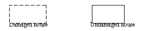 As the damaged buildings and houses are represented by broken lines,