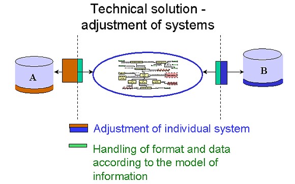 The models are expected to be stable for a long period of time whereas technique and format will change. The models have links to the Land Data Bank System via joint identifiers. The models can handle either whole databases or changes of separate objects. This assumes identifiers, which are unique for the country. The modelling language Express, which has been used is a part of the standard STEP (ISO 10303). Format and applications for data transmissionUI 2000 consists besides models of information, of specified file format and an application for data transmission. These three parts are independent of each other and are possible to change and further develop separately. Technical solutionThe specification for UI 2000 does nor describe how it shall be connected to sending or receiving system or how the agreed model shall be translated to different internal models which exists. There is a demand for a unique solution for each system, which has to be taken out by each organisation together with their system supplier. But there are some basic criteria for each system, which has to be fulfilled. The systems have to be object oriented, be able to make controls of data structure and also handle changes of objects.